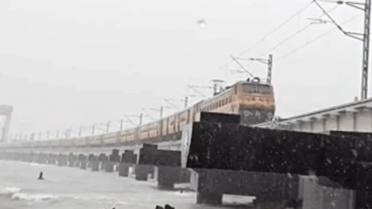 இதனால் அப்பகுதியில் கடல் சீற்றத்துடன் காணப்படுகிறது. இதனிடையே, ராமேஸ்வரத்திற்கு நேற்று முதல் ரயில் சேவை நிறுத்தப்பட்டு, அனைத்து ரயில்களும் மண்டபம் மற்றும் ராமநாதபுரம் ரயில் நிலையத்திலிருந்து இயக்கப்பட்டு வருகிறது.