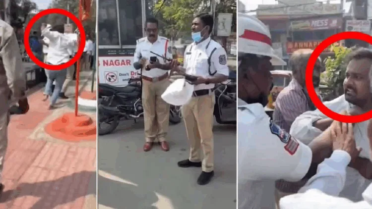 ஹைதராபாத்தின் சுரூர் நகர் எல்லைக்குட்பட்ட கோட்டபேட்டா சௌரஸ்தா பகுதியில் இருசக்கர வாகனத்தில் வந்த இளைஞரின் செல்போனை போக்குவரத்து காவலர் ஒருவர் பறித்து உடைத்ததாகக் கூறப்படுகிறது.