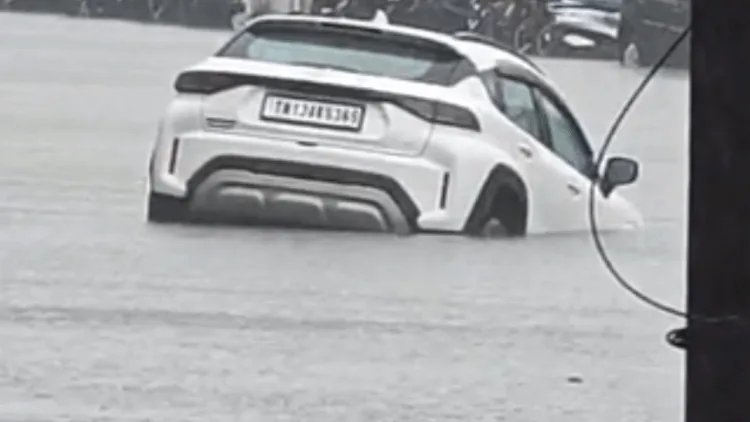 இதன் காரணமாக வேலப்பன்சாவடி சர்வீஸ் சாலையில் மழை நீர் தேங்கி இருந்த பள்ளத்தில் பேருந்து, கார் என அடுத்தடுத்து வாகனங்கள் சிக்கியது.
