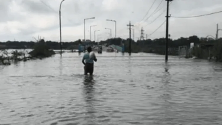 சடையாங்குப்பம் தரைப்பாலத்தில் தண்ணீர் வேகமாகச் செல்லும் நிலையில், மக்கள் ஆபத்தான முறையில் பயணம் மேற்கொண்டு வருகின்றனர்.