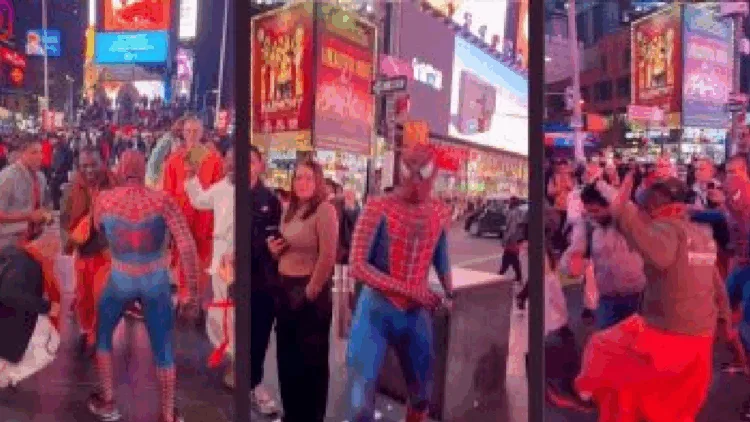 ஸ்பைடர் மேன், சூப்பர் மேன் உடையணிந்து ஹரே கிருஷ்ணா, ஹரே ராமா பக்தி பாடலை பாடிய பங்கேற்பாளர்களின் வீடியோ இணையத்தில் வைரலாகி வருகிறது.
