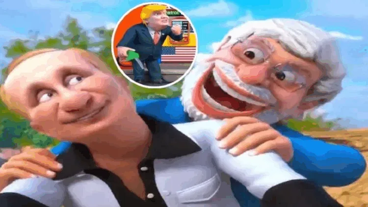 அதில் ரஷ்யாவிடம் இருந்து கச்சா எண்ணெய் வாங்கக் கூடாது என வலியுறுத்தும் டிரம்பை கிண்டல் செய்யும் காட்சிகளும் இடம்பெற்றன.