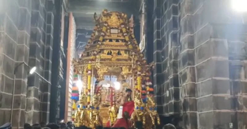 காஞ்சிமடம் மற்றும் பொதுமக்களின் பங்களிப்புடன் செய்யப்பட்ட காஞ்சி ஏகாம்பரநாதர் கோயில் தங்கத்தேரை, அறநிலையத்துறை அமைச்சர் சேகர்பாபுவிடம் விஜயேந்திர சரஸ்வதி சுவாமிகள் ஒப்படைத்தார்.