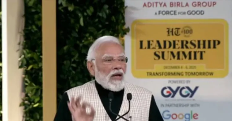 டெல்லியில் நடைபெற்ற இந்துஸ்தான் டைம்ஸ் தலைமைத்துவ மாநாட்டில் பிரதமர் மோடி கலந்து கொண்டார். அப்போது பேசிய அவர், கடந்த 25 ஆண்டுகளில் உலகளாவிய பெருந்தொற்றுகள், போர்கள் மற்றும் தொழில்நுட்ப இடையூறுகள் ஆகியவற்றால் உலகம் நிச்சயமற்ற தன்மையால் நிரம்பியுள்ளதாகவும், இந்த நெருக்கடிச் சூழலுக்கு மத்தியில், இந்தியா ஒரு தனித்துவமான நம்பிக்கையின் தூணாக இருப்பதாகவும் கூறினார்.