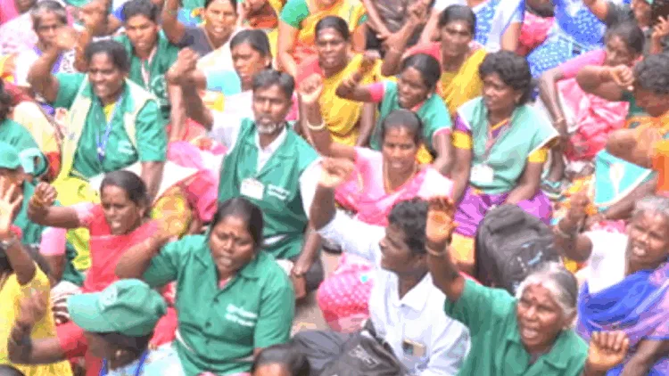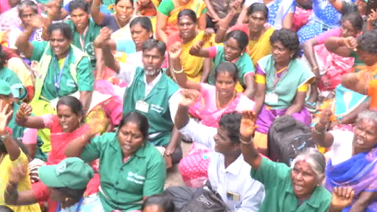 சென்னை சைதாப்பேட்டை பனகல் மாளிகை அருகே பல்வேறு கோரிக்கைகளை வலியுறுத்தி ஊரக வளர்ச்சி துறை தொழிலாளர் சங்கம் சார்பில் காலவரையற்ற காத்திருப்பு போராட்டம் நடைபெற்று வருகிறது.