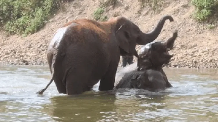 இந்தநிலையில் ஊருக்குள் இருந்த குட்டையில் யானைகள் ஆனந்த குளியல் போட்டன. இக்காட்சியை அவ்வழியாக வந்த பொதுமக்கள் சிலர், செல்போனில் வீடியோ எடுத்துச் சமூக வலைத்தளத்தில் பதிவிட்டனர்.