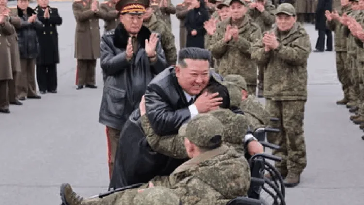 உக்ரைனுக்கு எதிரான போரில் ரஷ்யாவுக்கு ஆதரவாக அனுப்பப்பட்ட ராணுவ வீரர்கள், கால், கைகளில் பலத்த காயமடைந்து சொந்த நாட்டிற்கு திரும்பிய நிலையில் வடகொரிய அதிபர் கிம் ஜாங் உன் அவர்களைக் கட்டியணைத்து வரவேற்றுள்ளார்.