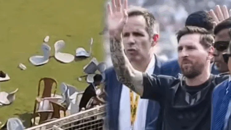 மெஸ்ஸியை பார்க்க முடியாத கோபத்தில் மைதானத்தை ரசிகர்கள் சூறையாடியதால் பதற்றமான சூழல் ஏற்பட்டது.