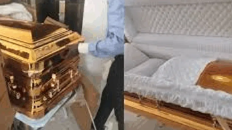 உலகளவில் பிரபலம் வாய்ந்த போதகரான எரேமியா, தனது தாயாருக்கு இறுதி மரியாதையாக இந்த விலையுயர்ந்தப் பேழையைப் பயன்படுத்தியுள்ளார். இந்தக் காட்சிகள் இணையத்தில் வைரலாகி உள்ளது.