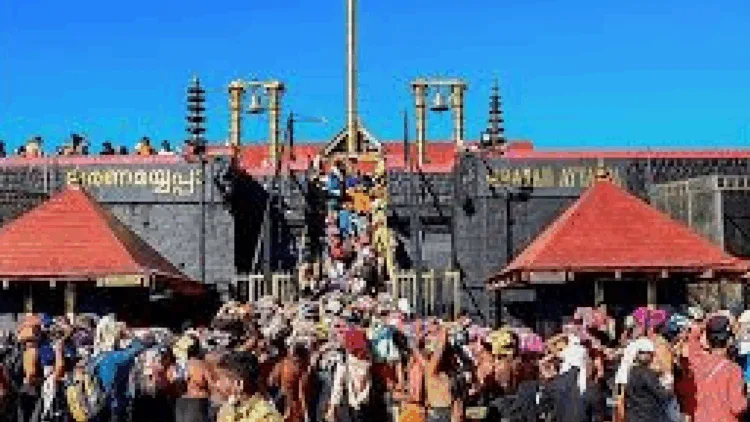 வார விடுமுறையையொட்டி சபரிமலை ஐயப்பன் கோயிலில் பக்தர்களின் கூட்டம் அலைமோதியது.