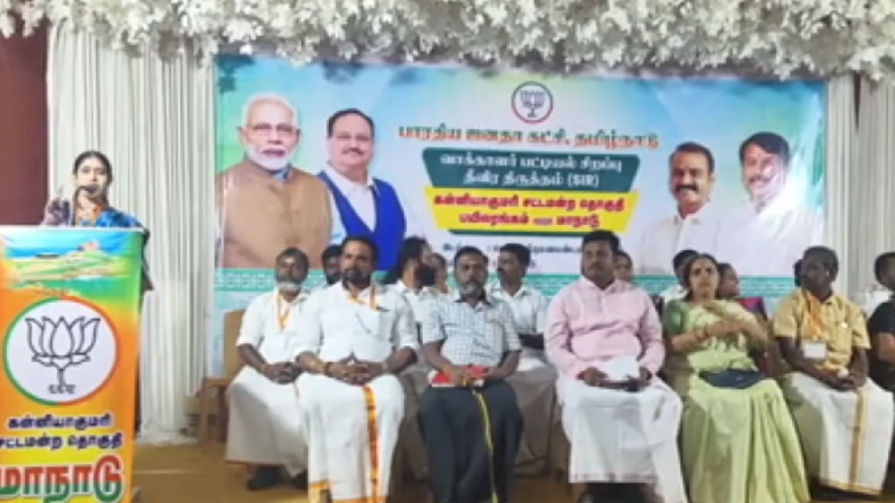 கன்னியாகுமரி மாவட்டம், சுசீந்தரம் பகுதியில் பாஜக சார்பில் பூத் கமிட்டி பயிலரங்கம் நடைபெற்றது. இந்த நிகழ்வில், முன்னாள் எம்எல்ஏ விஜயதரணி சிறப்பு விருந்தினராகக் கலந்து கொண்டார்.