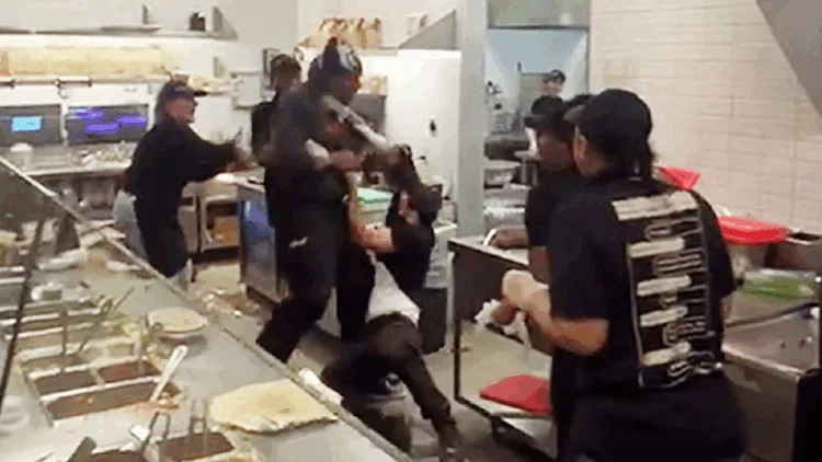 அமெரிக்காவில் பிரபல உணவக கிளையில் வாடிக்கையாளர்களுக்கும் ஊழியர்களுக்கும் இடையே கைகலப்பு ஏற்பட்ட வீடியோ வைரலாகி வருகிறது.