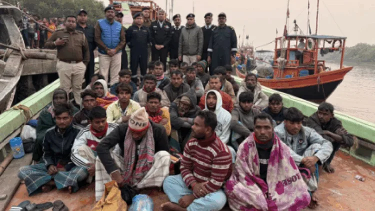 அப்போது சட்டவிரோதமாக நுழைந்த வங்கதேச மீனவர்கள் 35 பேரையும், அவர்களது இரண்டு மீன்பிடிப் படகுகளையும் இந்திய கடலோர காவல் படையினர் சிறைபிடித்து மேற்கு வங்க மாநிலம் ஃப்ரேசர்கஞ்ச் மீன்பிடித் துறைமுகத்திற்கு அழைத்து வந்தனர்.