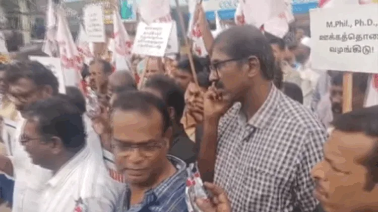 நெல்லை சந்திப்புப் பேருந்து நிலையம் முன்பாக ஒன்று கூடிய அரசு உதவி பெறும் கல்லூரிகளின் பேராசிரியர்கள் பல்வேறு கோரிக்கைகளை முன்வைத்தனர்.