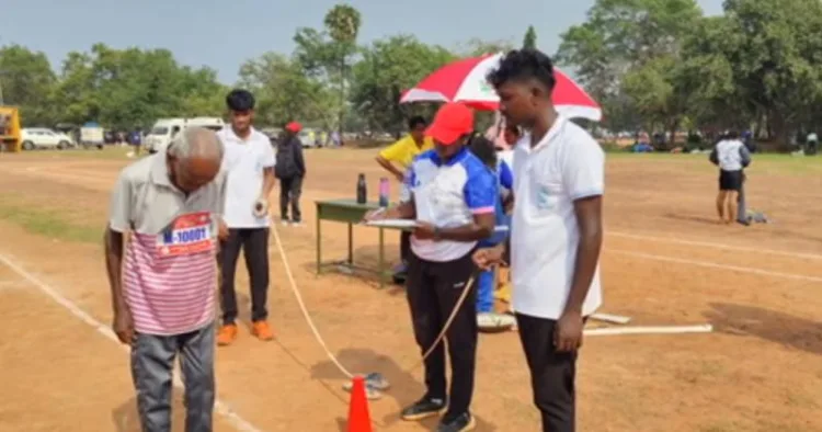 சிவகங்கை மாவட்டம் காரைக்குடியில் 100 வயதுடைய முதியவர் ஒருவர் நீளம் தாண்டுதல், தடகள போட்டி உள்ளிட்டவற்றில் பங்கேற்று அசத்தினார்.