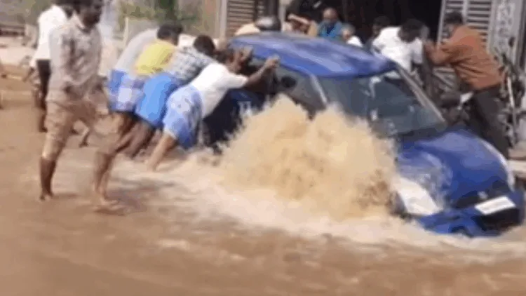 அப்போது, சாலையோரம் நிறுத்தப்பட்டிருந்த கார் 5 அடி பள்ளத்தில் உள்வாங்கியது. இதனை தொடர்ந்து, தண்ணீர் நிறுத்தப்பட்டு பொதுமக்களின் உதவியுடன் கயிறுக் கட்டி கார் மீட்கப்பட்டது. இந்தச் சம்பவத்தின்போது காரில் ஆட்கள் இல்லாததால் உயிர் தேசம் தவிர்க்கப்பட்டது.