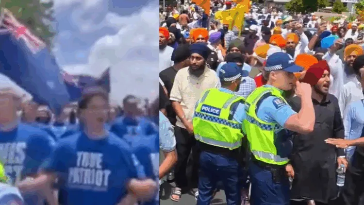 நியூசிலாந்தின் ஆக்லாந்து நகரில் உள்ள கிரேட் சவுத் ரோடு பகுதியில் கடந்த 20ஆம் தேதி சீக்கியர்கள் பேரணி ஒன்றை நடத்தினர். அப்போது ‘நியூசிலாந்தின் உண்மையான தேசபக்தர்கள்’ எனப்படும் அமைப்பை சேர்ந்தவர்கள் சுமார் 50-க்கும் மேற்பட்டோர், சீக்கியர்களின் பேரணியை எதிர்கொண்டு தடுத்து நிறுத்தினர்.