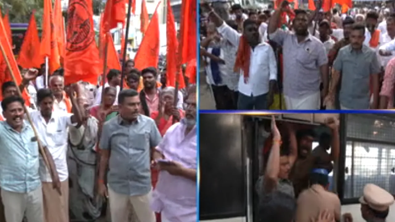 நீதிமன்ற உத்தரவுப்படி, திருப்பரங்குன்றம் தீபத்தூணில் தீபமேற்றக் கோரி கண்டன ஆர்ப்பாட்டம் நடத்திய இந்து முன்னணியினர் கைது செய்யப்பட்டனர்.