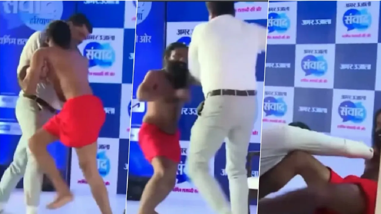 யோகா குரு பாபா ராம்தேவ் பத்திரிகையாளருடன் மல்யுத்தம் செய்த வீடியோ வைரலாகி வருகிறது.