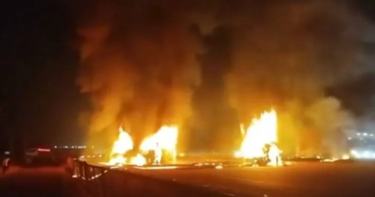 இதில் பேருந்தின் டீசல் டேங்க் வெடித்துச் சிதறியது. இதனால் பேருந்து முழுவதும் தீப்பற்றி எரிந்தது. இந்த விபத்தில் பேருந்துக்குள் சிக்கிக் கொண்ட 10 பயணிகள் சம்பவ இடத்திலேயே உயிரிழந்தனர்.