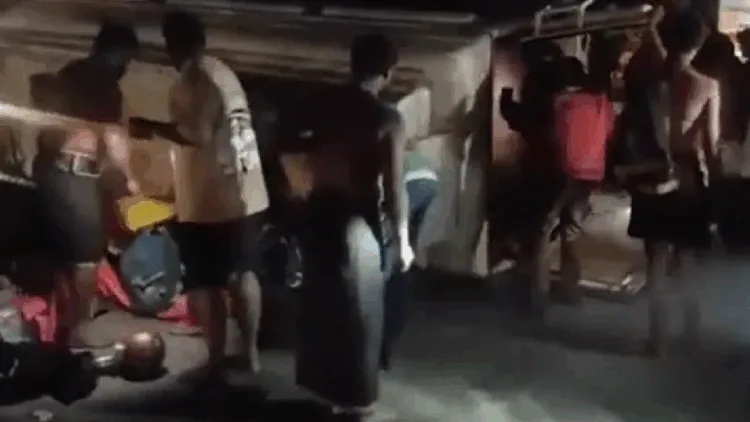 அப்போது அண்ணாமய்யா மாவட்டம், சம்பேபள்ளி அருகே பேருந்து எதிர்பாராதவிதமாகச் சாலையின் நடுவே இருந்த தடுப்பில் மோதி, நடுரோட்டில் கவிழ்ந்தது.