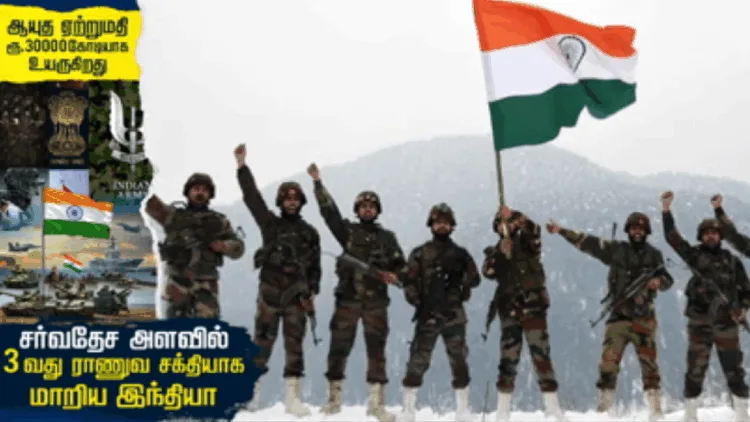 ஆண்டுக்கு 30 ஆயிரம் கோடி அளவுக்கு ஆயுத ஏற்றுமதி செய்யும் இந்தியா, மூன்றாவது பெரிய ராணுவ சக்தியாக உருவெடுத்து வருகிறது. ஆயுத ஏற்றுமதியை மேலும் அதிகரிக்கும் நடவடிக்கையில் மும்முரம் காட்டி வருகிறது. இதுகுறித்து ஒரு செய்தித்தொகுப்பை தற்போது பார்க்கலாம்.