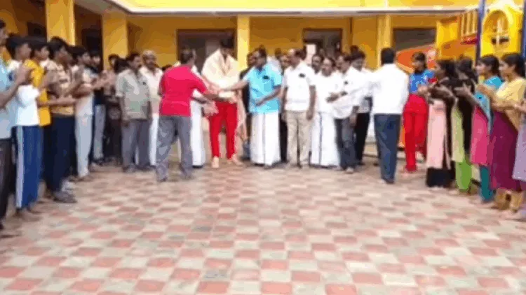 மேலும், அவர்களை ஊர்வலமாக அழைத்து வந்து சால்வை அணிவித்து பாராட்டு கேடயமும் வழங்கினர்.
