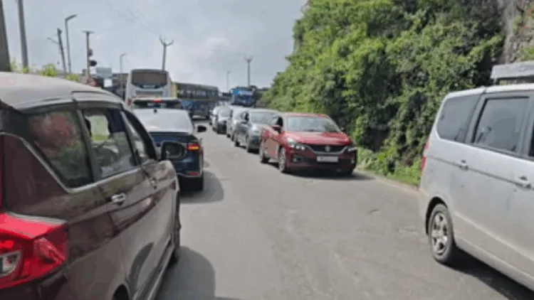 கடுமையான போக்குவரத்து நெரிசல் காரணமாக உரிய நேரத்தில் செல்ல முடியாமல் சுற்றுலாப் பயணிகள் தவிக்கும் நிலை ஏற்பட்டது.