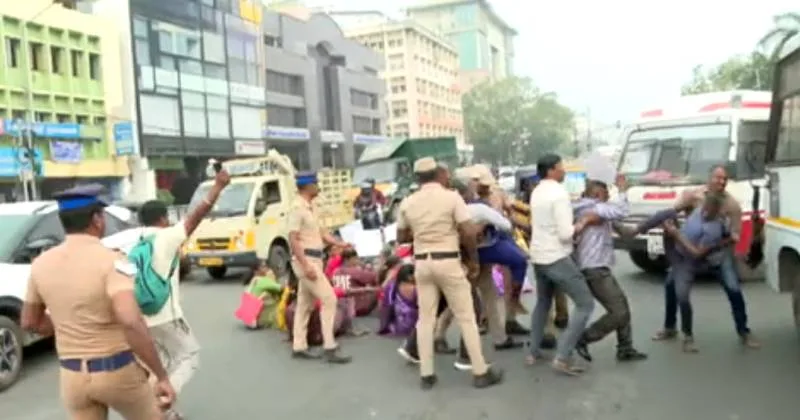 திமுக தலைமை அலுவலகமான அண்ணா அறிவாலயத்தை முற்றுகையிட முயன்ற தூய்மை பணியாளர்களை போலீசார் குண்டுக்கட்டாக கைது செய்தனர்.