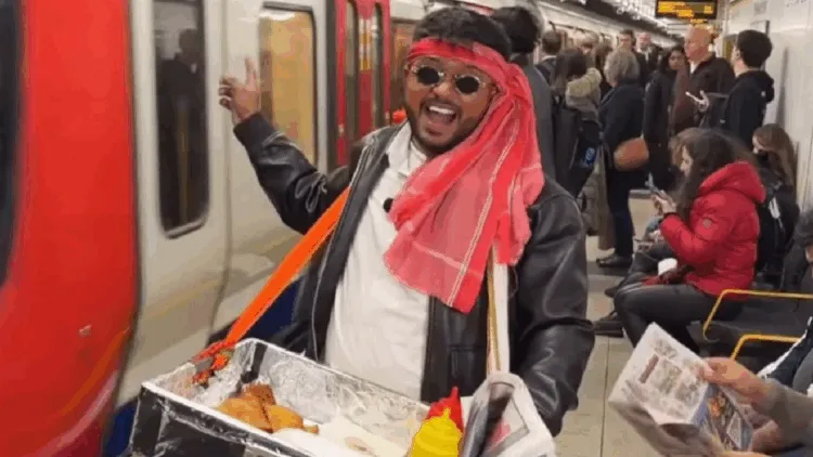 இங்கிலாந்தின் லண்டனில் ஓடும் ரயிலில் இந்தியர் ஒருவர் சமோசா விற்பனை செய்தது போன்ற வீடியோ காட்சிகள் வைரலாகி வருகின்றன.