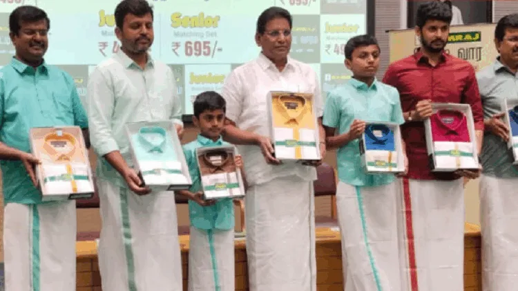 2026ஆம் ஆண்டுக்கான வேட்டி வாரத்தை முன்னிட்டு திருப்பூரில் ராம்ராஜ் காட்டன் நிறுவனம் சார்பில் ஆண்கள் மற்றும் சிறுவர்களுக்கான புதிய ரக வேட்டி, சட்டைகள அறிமுகப்படுத்தும் விழா நடைபெற்றது.