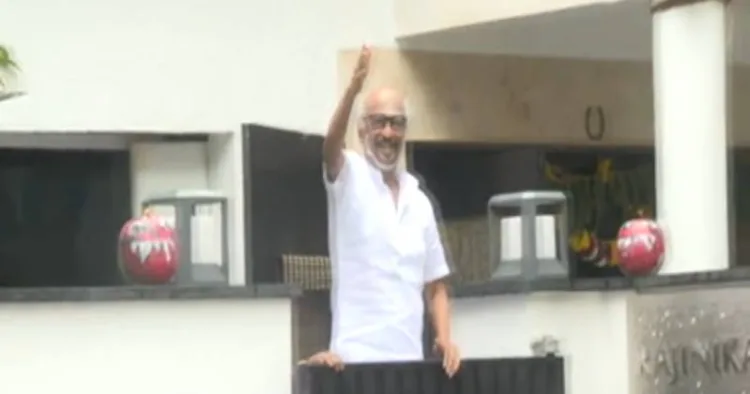 சென்னை போயஸ் கார்டன் இல்லம் முன்பு கூடியிருந்த ரசிகர்களுக்கு நடிகர் ரஜினிகாந்த் ஆங்கிலப் புத்தாண்டு வாழ்த்து தெரிவித்தார்.