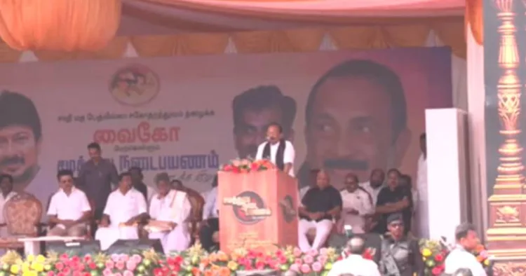 திருச்சி மாவட்டம், தென்னூர் உழவர் சந்தை மைதானத்தில், மதிமுக பொதுச்செயலாளர் வைகோ தலைமையில் சமத்துவ நடைபயணத்தின் துவக்க விழா நடைபெற்றது. இந்த நடைபயணத்தை முதலமைச்சர் ஸ்டாலின் தொடங்கி வைத்தார். இந்த பயணம் வரும் 12ம் தேதி மதுரையில் நிறைவு பெறுகிறது.