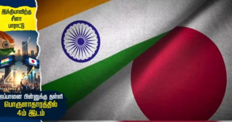 ஜப்பானை பின்னுக்குத் தள்ளி, உலகின் 4-வது பெரிய பொருளாதார நாடாக முன்னேறியுள்ள இந்தியாவை சீனா பாராட்டியுள்ளது. அது பற்றிய ஒரு செய்தி தொகுப்பு.