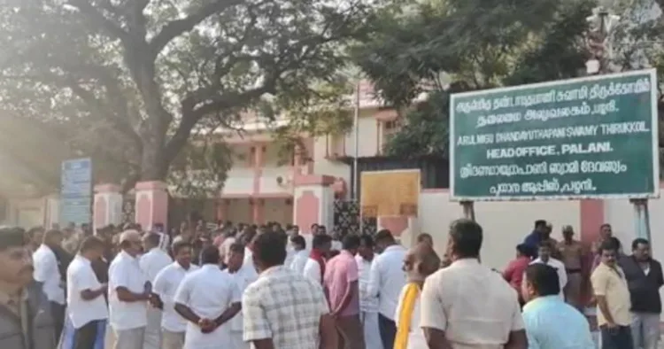 திண்டுக்கல் மாவட்டம் பழனி கிரிவலப்பாதையில் சாலையோர வியாபாரிகளை, வியாபாரம் செய்ய அனுமதிக்க கோரி தேவஸ்தான அலுவலகத்தை திமுகவினர் முற்றுகையிட முயன்றனர்.