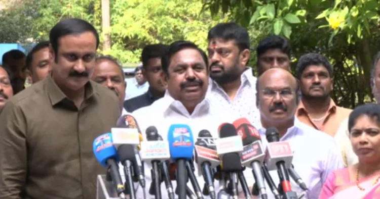 அதிமுக பொதுச்செயலாளர் எடப்பாடி பழினிசாமியை பாமக தலைவர் அன்புமணி இன்று சந்தித்து பேசினார். பின்னர் செய்தியாளர்களிடம் பேசிய இபிஸ், அதிமுக தலைமையிலான தேசிய ஜனநாயக கூட்டணியில் பாமக இணைந்துள்ளதாக தெரிவித்தார்.