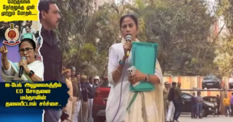 கொல்கத்தாவில் I-PAC நிறுவனம் தொடர்பான இடங்களில் அமலாக்கத்துறை நடத்திய சோதனைகள் மற்றும் அதில் முதலமைச்சர் மம்தா பானர்ஜியின் நேரடி தலையீடு குறித்த பரஸ்பர குற்றச்சாட்டுகள், மேற்கு வங்க அரசியலில் பெரும் சர்ச்சையை உருவாக்கியுள்ளது. இது குறித்து இந்த செய்தி தொகுப்பில் விரிவாக பார்க்கலாம்…