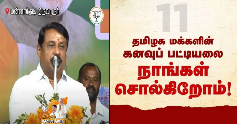 11. இந்துமத வெறுப்பில்லாத அரசு. மொத்தத்தில், திமுக இல்லாத தமிழகம் வேண்டும். அதுவே, தமிழக மக்களின் கனவு. தமிழக மக்களின் இந்தக் கனவு வெகு விரைவில் நிறைவேறும் என நயினார் நாகேந்திரன் தெரிவித்தார்.
