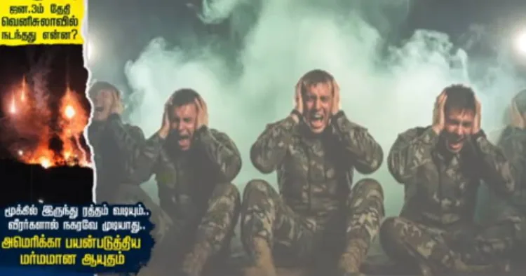 வெனிசுலா வீரர் தெரிவித்துள்ள இந்த தகவல்கள் அமெரிக்காவின் ஆயுத பலம் எத்தகையது என்பதை உணர்த்தும் வகையில் உள்ளன. குறிப்பாக, எதிரி நாட்டு வீரர்களின் மூக்கில் இருந்து ரத்தம் வர செய்து, அவர்களை அசைய முடியாமல் செய்யும் அமெரிக்காவின் அந்த ஆயுதம் தற்போது முக்கிய பேசுபொருளாகியுள்ளது.