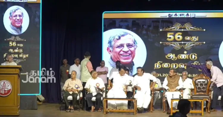 துக்ளக் நாளிதழின் 56ஆவது ஆண்டு நிறைவு விழா சென்னை தேனாம்பேட்டையில் நடைபெற்றது. விழாவில் பேசிய அமைச்சர் தர்மேந்திர பிரதான், தமிழ்நாடு இந்தியாவின் மொத்த உள்நாட்டு உற்பத்தியில் சுமார் 9 சதவீத பங்களிப்பை வழங்குவதாகவும், நாட்டின் முக்கிய பொருளாதார நுழைவாயிலாக திகழ்வதாகவும் கூறினார். மேலும், தமிழ் பாரம்பரியத்திற்கு பிரதமர் மோடி சிறப்பு முக்கியத்துவம் அளித்து வருவதையும் அவர் சுட்டிக்காட்டினார். தேசிய கல்விக்கொள்கையானது அரசியல் காரணங்களுக்காக அல்லாமல், எதிர்கால தலைமுறையின் வளர்ச்சிக்காக வடிவமைக்கப்பட்டுள்ளதாக கூறினார். மேலும், மும்மொழிகளை கற்பதால் தாய்மொழிக்கு எந்தத் தீங்கும் ஏற்படாது எனவும் அமைச்சர் தர்மேந்திர பிரதான் விளக்கம் அளித்தார்.