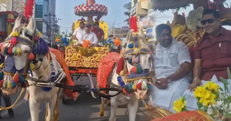 இதனை தொடர்ந்து, புதுச்சேரி அமைச்சர் திருமுருகன், திமுக எம்எல்ஏ நாஜிம் ஆகியோரை அருகருகே அமர வைத்து மாவட்ட ஆட்சியர் பிரகாஷ், சாரட் வண்டியை ஒட்டி சென்றார்.