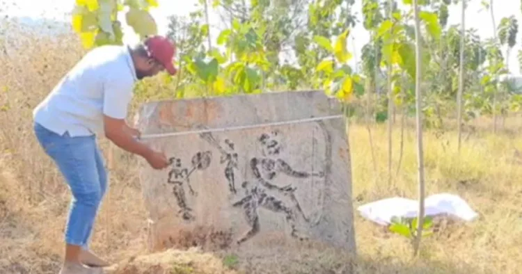 அதில், 5 அடி அகலமும், 8 அடி உயரமும் கொண்ட நடுக்கல்லில் 3 உருவங்கள் செதுக்கப்பட்டிருப்பதை கண்டறிந்தார். பின்னர் செய்தியாளர்களிடம் பேசிய வரலாற்றியல் ஆய்வாளர் பிரபு, போரில் வீரமரணமடைந்த வீரனுக்காக இந்த நடு கல் வைக்கப்பட்டிருக்கலாம் என தெரிவித்தார்.