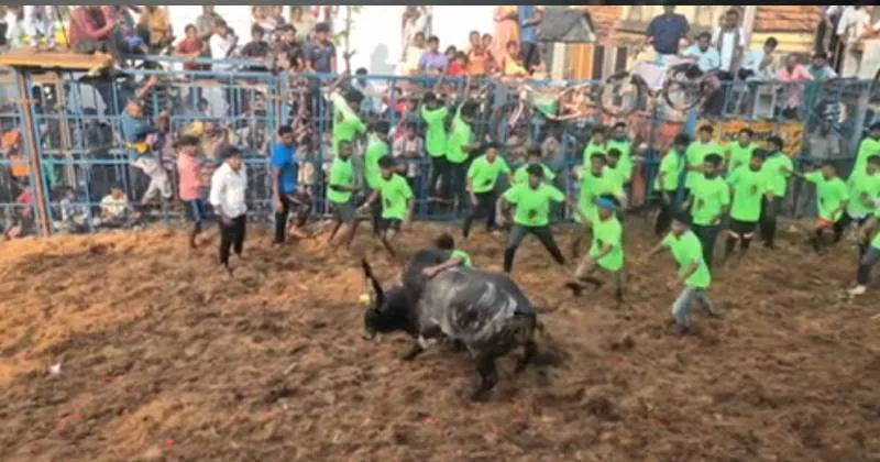 திருச்சி மாவட்டம், நவலூர் பகுதியில் தைப்பொங்கலையொட்டி பாரம்பரிய ஜல்லிக்கட்டு போட்டி கோலாகலமாக நடைபெற்றது.