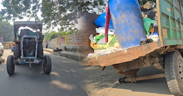 தாம்பரம் சானிடோரியம் அருகே மாநகராட்சிக்கு சொந்தமான குப்பை அள்ளும் டிராக்டரில் சக்கரம் தனியே கழன்று ஓடிய சம்பவம் வாகன ஓட்டிகளிடையே அச்சத்தை ஏற்படுத்தியுள்ளது.