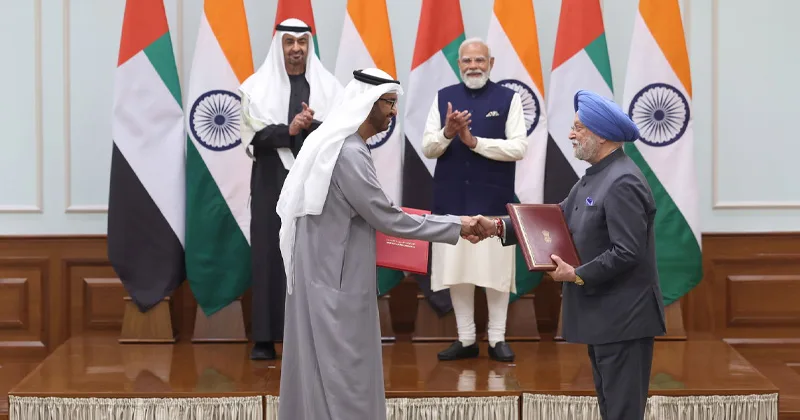 பிரதமர் மோடியின் அழைப்பின் பேரில் இந்தியாவுக்கு வந்த ஐக்கிய அரபு அமீரக அதிபர்(Sheikh Mohamed bin Zayed Al Nahyan) ஷேக் முகமது பின் சயீத் அல் நஹ்யான் வெறும் மூன்று மணி நேரம் மட்டுமே டெல்லியில் செலவிட்டபோதிலும் இருதரப்பு வர்த்தகம் மற்றும் பாதுகாப்புத் துறை சார்ந்து முக்கிய முடிவுகள் எடுக்கப் பட்டுள்ளன