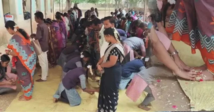 பொதுத்தேர்வில் அதிக மதிப்பெண்கள் பெற்று வெற்றி அடைய வேண்டி, மாணவர்கள் தங்களது பெற்றோர்களுக்கு பாத பூஜை செய்து வழிபட்டனர்