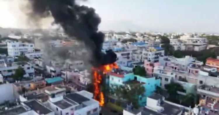தொடர்ந்து தீ மளமளவென பரவியதால் அப்பகுதி முழுவதும் புகை மண்டலமாக காட்சியளித்தது. தகவலறிந்து அங்கு சென்ற தீயணைப்பு வீரர்கள் நீண்ட நேரம் போராடி தீயை அணைக்கும் பணியில் ஈடுபட்டனர். மேலும் இந்த விபத்தில் ஏராளமான பொருட்கள் தீயில் கருகி சேதமடைந்தன.