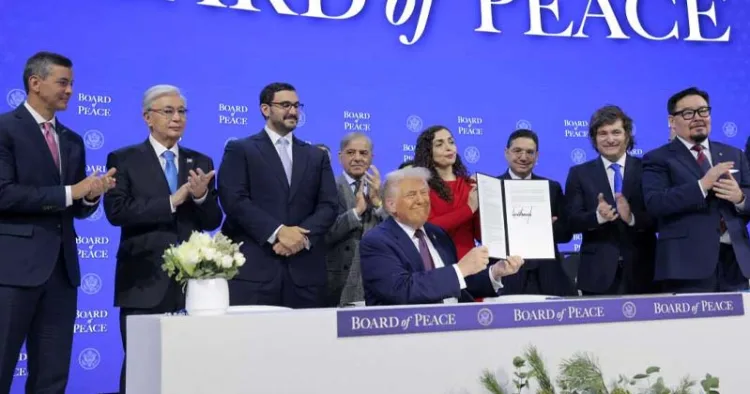 இதில் சேர 50க்கும் மேற்பட்ட நாடுகளுக்கு அமெரிக்கா அழைப்பு விடுத்திருந்தது. இந்நிலையில் சுவிட்சர்லாந்தின் டாவோசில் நடக்கும் உலக பொருளாதார மன்றத்தில் வருடாந்திர கூட்டத்தில் டிரம்பின் காசா அமைதி வாரியத்தில் இணையும் நாடுகள் கையெழுத்திடும் நிகழ்வு நடந்தது.