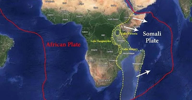 பூமியின் மேலோடு தோராயமாக 15 முதல் 20 வரையிலான டெக்டோனிக் தட்டுகளால் ஆனது. கிழக்கு ஆப்பிரிக்காவில் உள்ள டெக்டோனிக் தட்டுகள் ஒன்றையொன்று விட்டு விலகிச் செல்கின்றன.