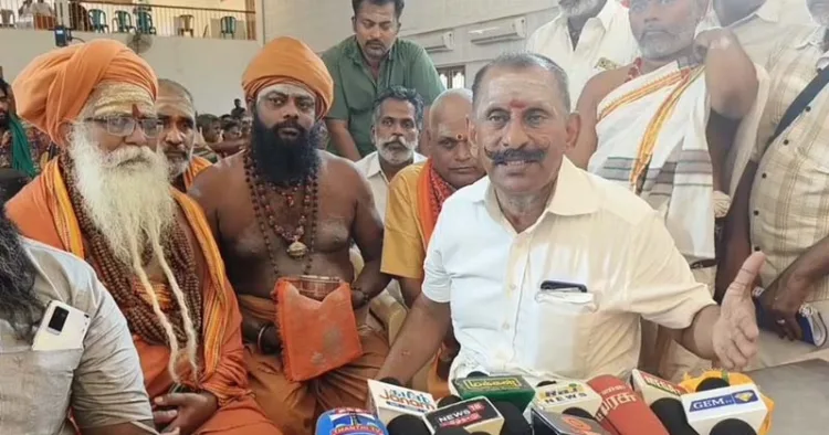 திமுக ஆட்சிக்கு வந்த பிறகு மடாதிபதிகளின் எண்ணிக்கை குறைத்து வருவதாகவும், இந்துக்களுக்காக வாதாடுவதற்கு தலைசிறந்த வழக்கறிஞர்கள் இல்லை எனவும் கூறினார்.